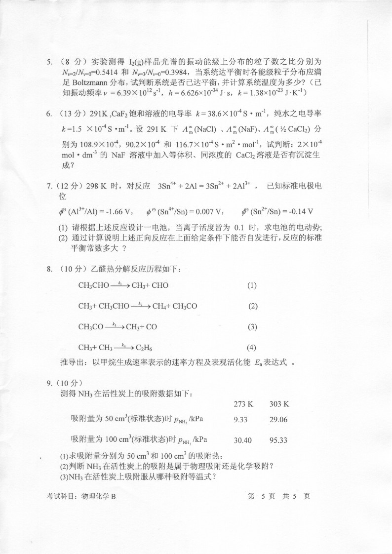 中国科学技术大学2016-2011物理化学半岛在线注册真题和答案(33)