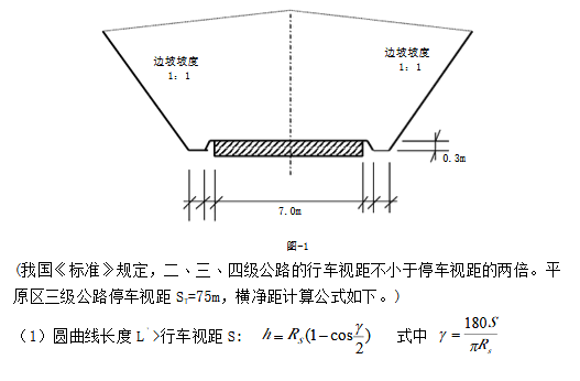 3.某平原区三级公路,有一弯道处于土质边坡地段,已知转角α=24°49′50″(右偏),圆曲线半径500m ,缓和曲线长50m ,其横断面尺寸如图-1所示。请用