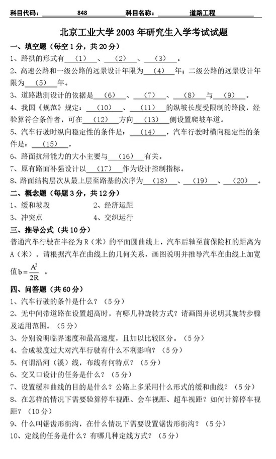 2003北京工业大学848道路工程半岛在线注册真题