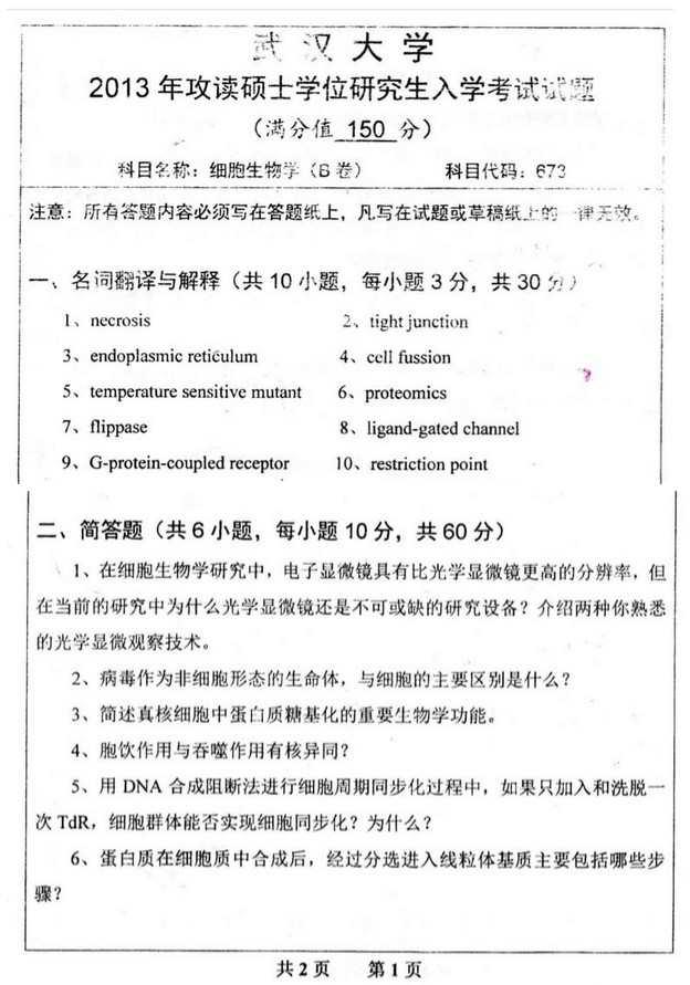 2010-2014武汉大学细胞生物学半岛在线注册真题(3)
