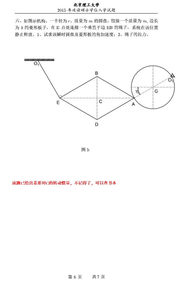 2015北京理工大学848理论力学半岛在线注册真题(5)