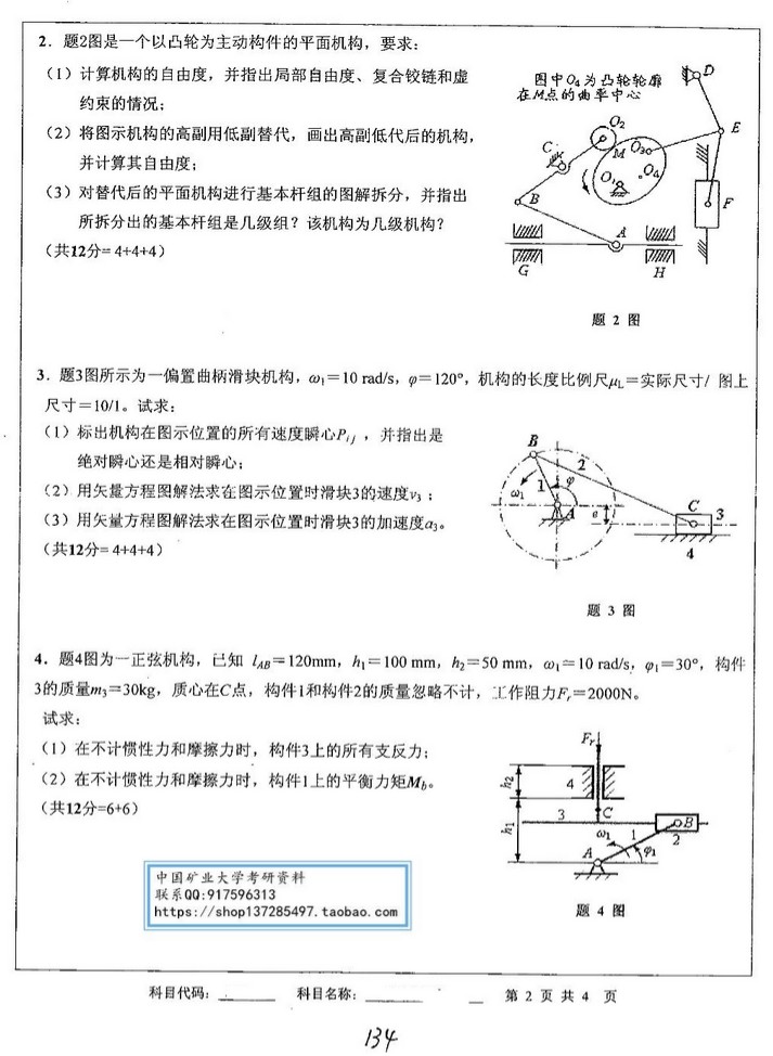 2012中国矿业大学808机械原理半岛在线注册真题分享下载(2)