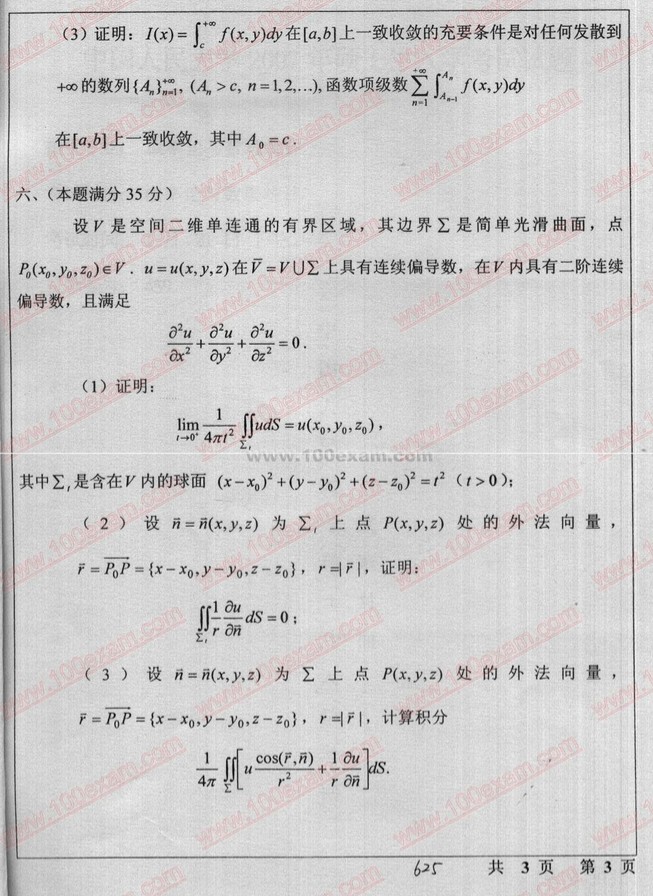 中国人民大学2007年数学分析半岛在线注册真题(3)