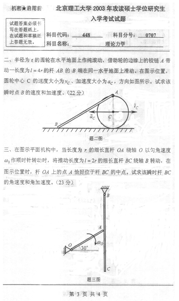 2003北京理工大学848理论力学半岛在线注册真题(3)