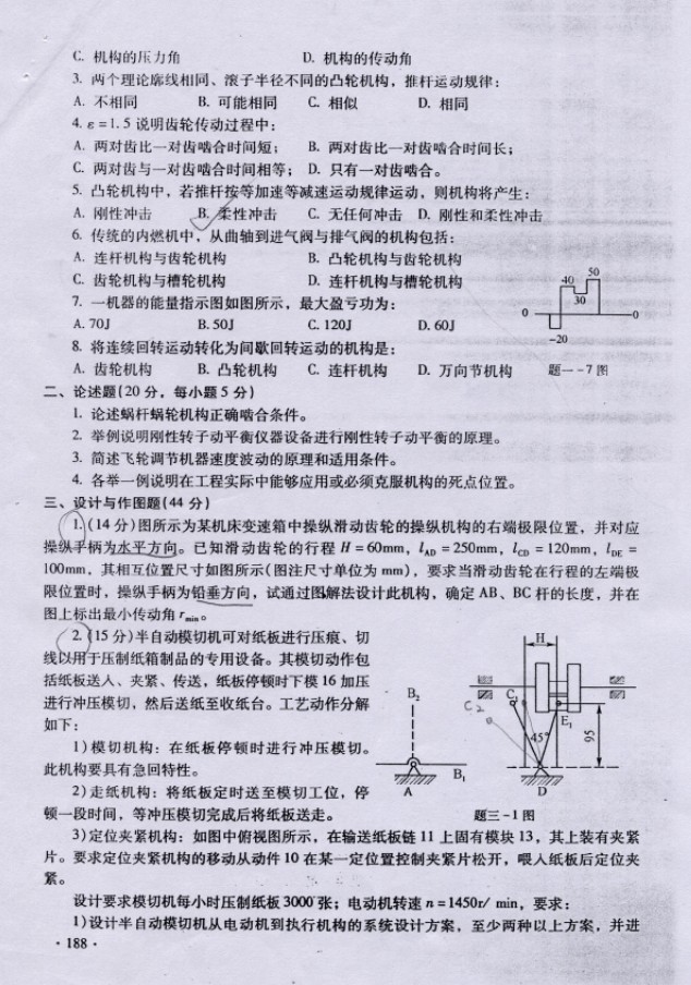 专业课半岛在线注册资料 本站小编 半岛在线注册 2020-04-23 一15分,让自己举例连杆机构,并画出机械简图,计算自由度二,10分,给出手动剃须刀,那种好像手动发电的手电一样的,用手按的那种。用怎么机构把直线运动转为圆周运功,答案是齿轮齿条。第二问是怎么实现加速。用齿轮就行。自动控制都是基础题,全选择,很简单看好课本就好。