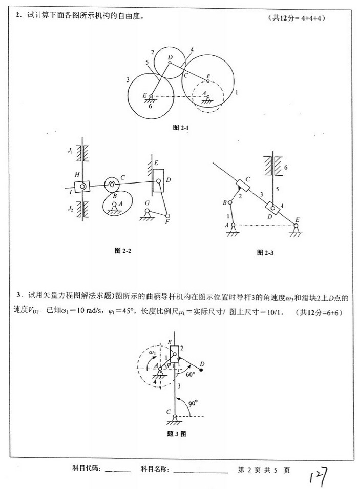 2011中国矿业大学机械原理专业课半岛在线注册真题(2)