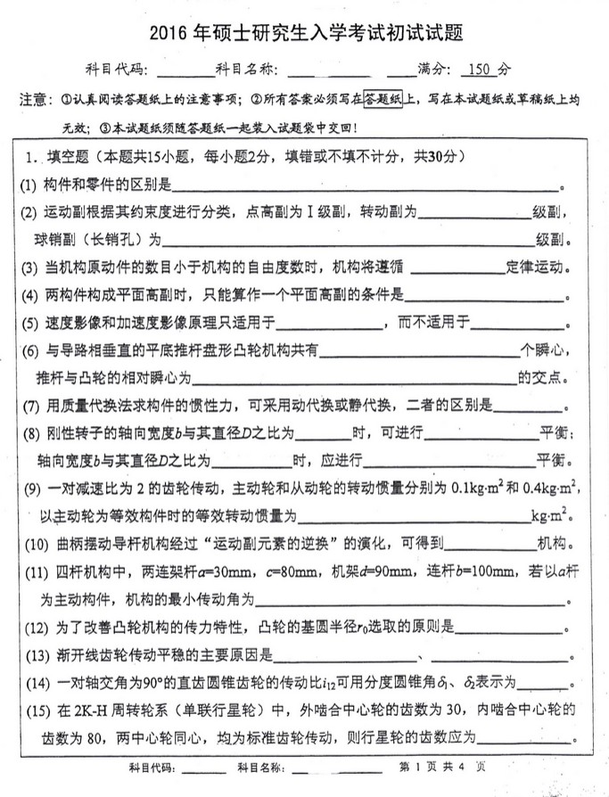 半岛在线注册调剂信息 本站小编 Free半岛在线注册网 2020-03-216套东南大学机械原理模拟试题