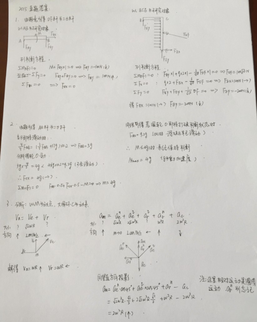 南京航空航天大学2015理论力学半岛在线注册真题答案