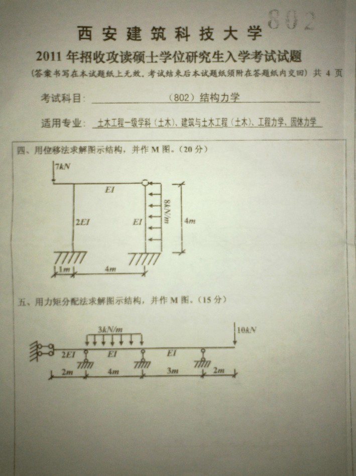 2011年西安建筑科技大学结构力学半岛在线注册试题(3)