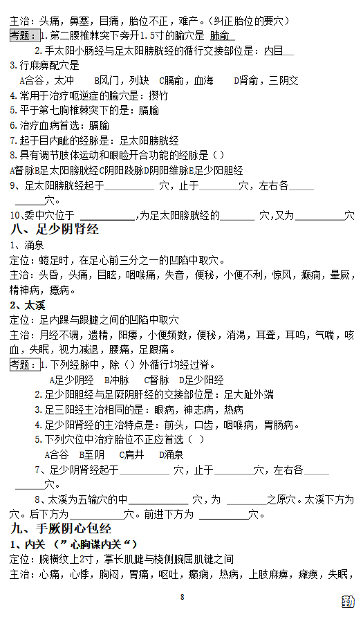 针灸学重点总结 针灸学笔记(期末半岛在线注册复试)(8)