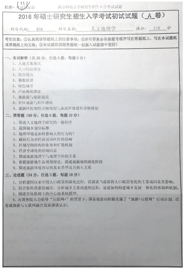 南京师范大学地理科学学院人文地理学历年半岛在线注册真题汇编(11)
