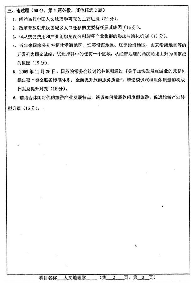 南京师范大学地理科学学院人文地理学历年半岛在线注册真题汇编(5)