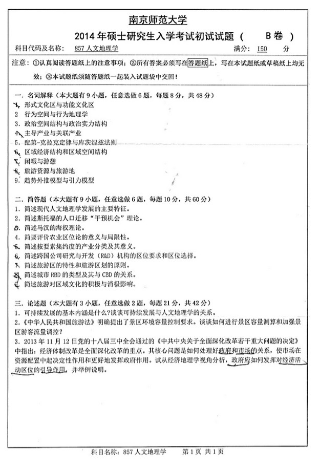 南京师范大学地理科学学院人文地理学历年半岛在线注册真题汇编(9)