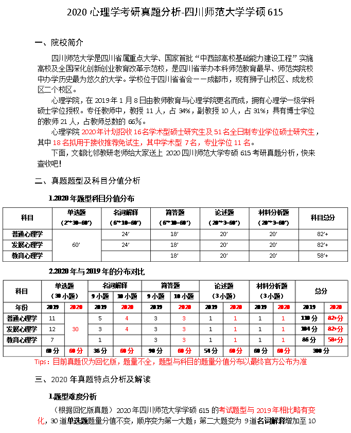 2020年四川师范大学心理学学硕615半岛在线注册真题分析