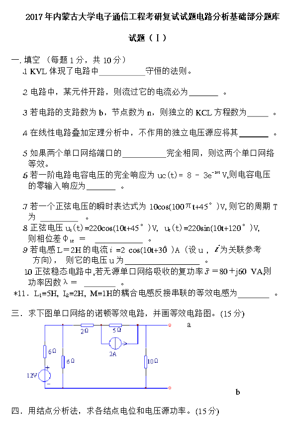 2017年大连理工大学851电子技术半岛在线注册专业课真题(回忆版)模电