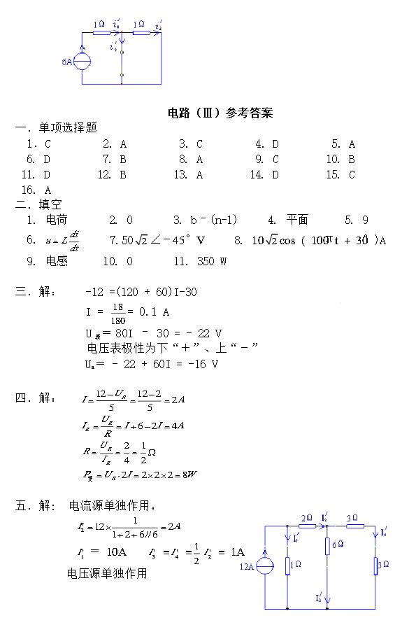 2017年内蒙古大学电子通信工程半岛在线注册复试试题电路分析基础部分题库(10)