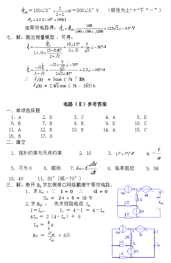 2017年内蒙古大学电子通信工程半岛在线注册复试试题电路分析基础部分题库(8)