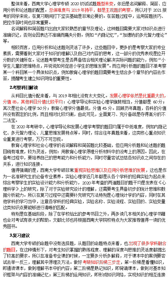 2020年西南大学心理学347半岛在线注册真题分析(2)