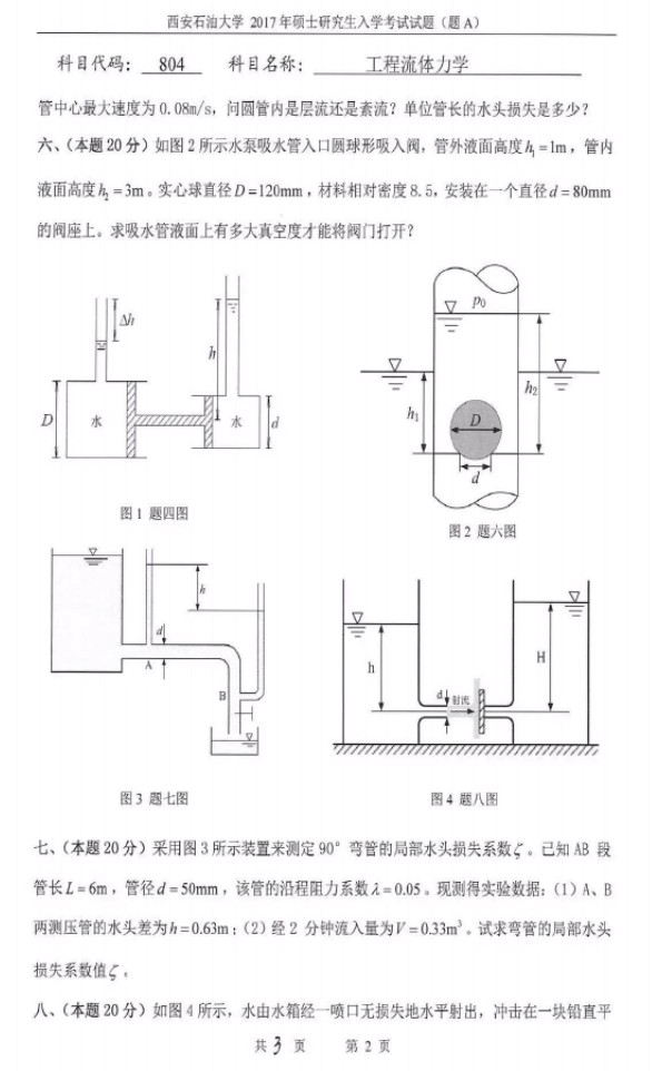 2017年西安石油大学804工程流体力学半岛在线注册真题(2)
