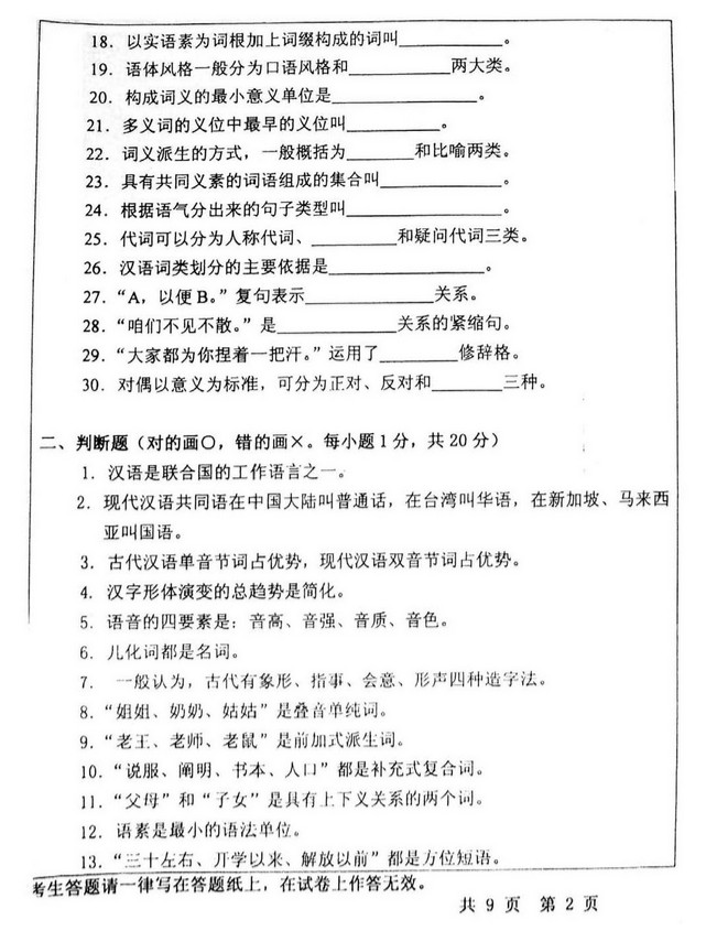 2010年华中师范大学汉语基础半岛在线注册真题及答案(2)