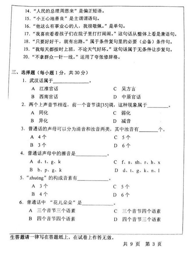 2010年华中师范大学汉语基础半岛在线注册真题及答案(3)