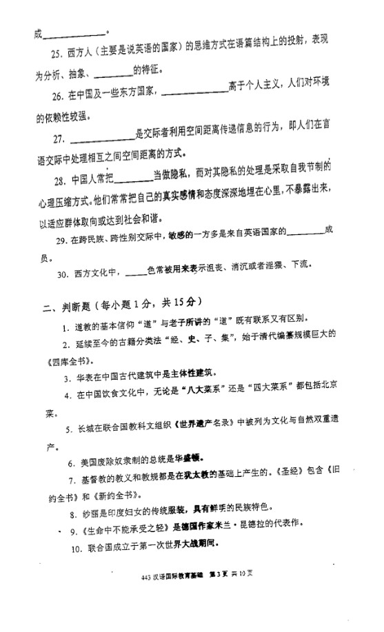 2010年厦门大学汉语国际教育基础半岛在线注册试题(3)