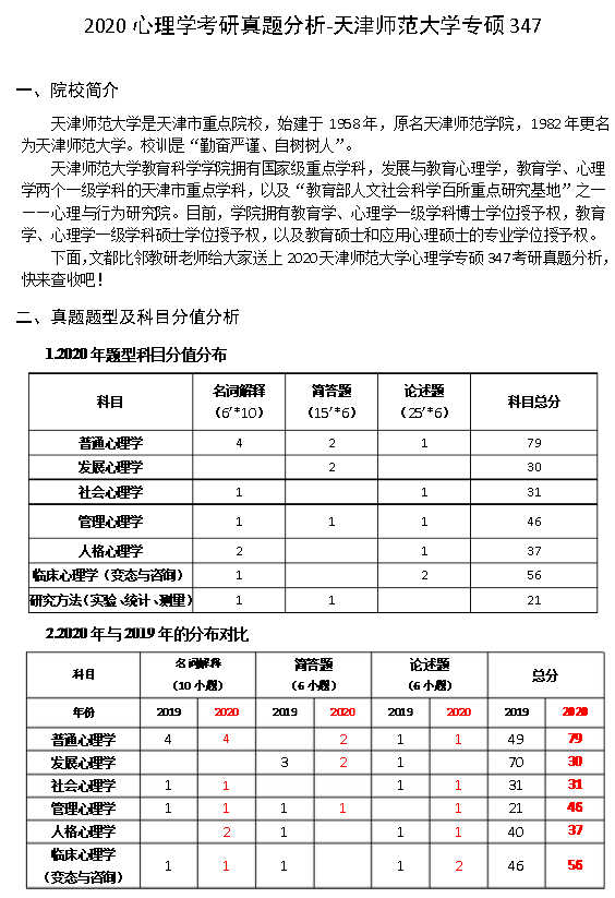 2020年天津师范大学心理学347半岛在线注册真题分析