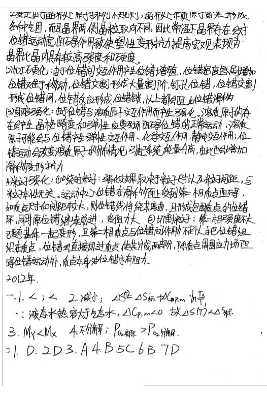 北京航空航天大学2011-2013年物理化学半岛在线注册真题 答案(7)