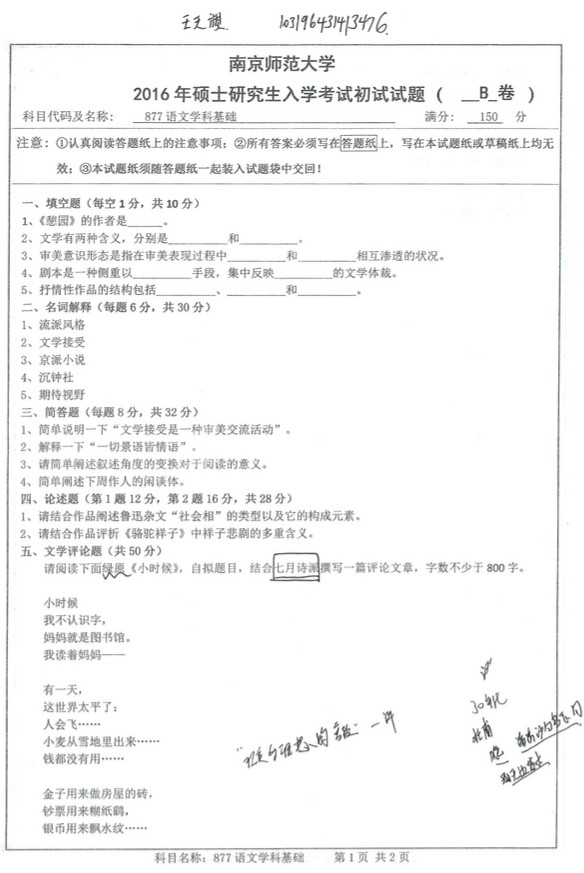 南京师范大学语文学科基础2016年半岛在线注册专业课试题
