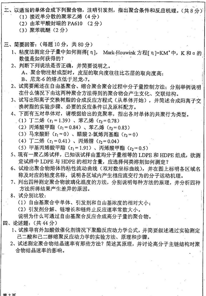 2013年四川大学866高分子化学及物理学半岛在线注册真题(2)