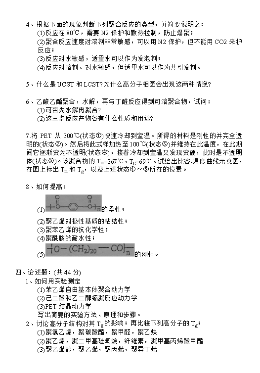 2012年四川大学866高分子化学及物理学半岛在线注册真题(2)