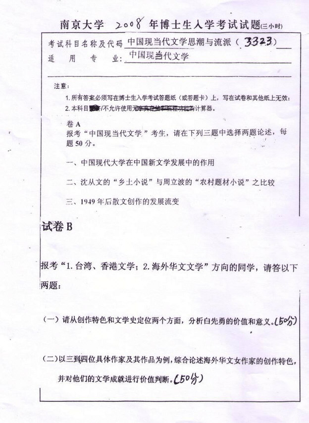 2006-2010年 南京大学文学院现当代文学考博专业课真题(3)
