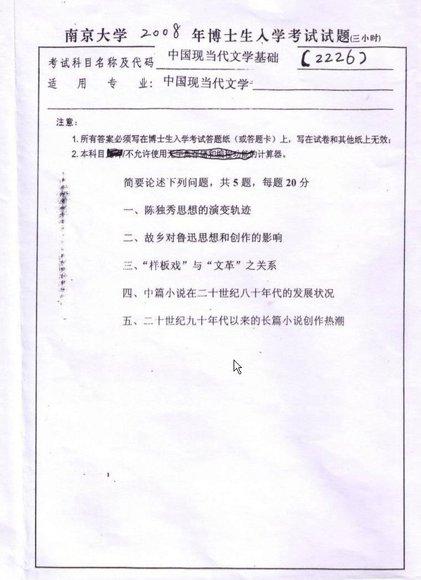 2006-2010年 南京大学文学院现当代文学考博专业课真题(4)