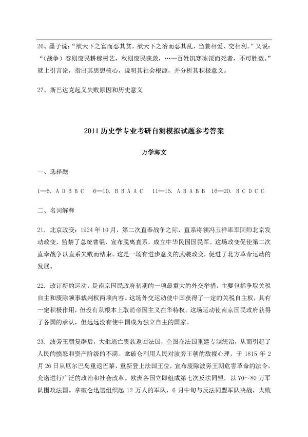 2011历史学专业半岛在线注册自测模拟试题及参考答案(5)