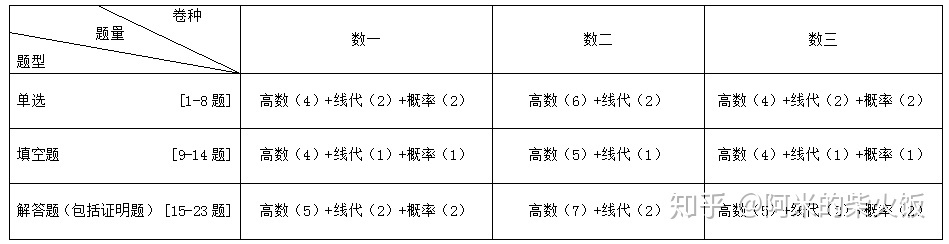 2、数一数二数三题型分布
