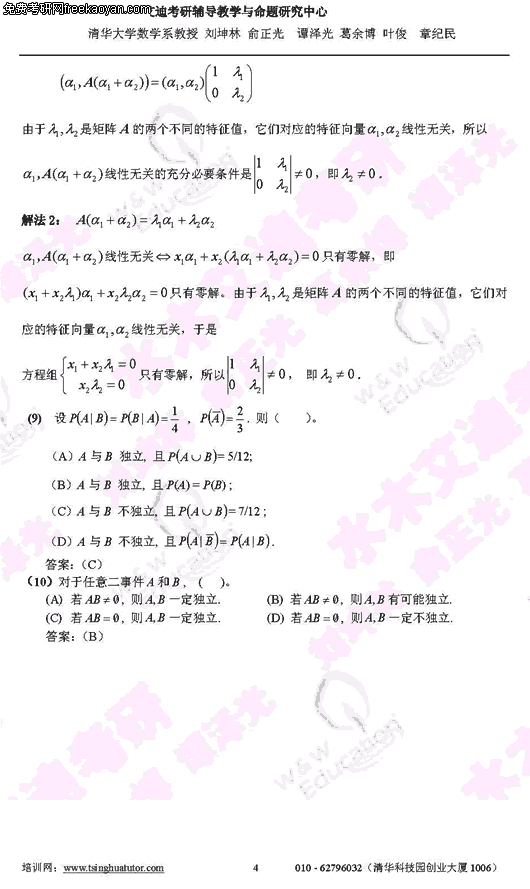 2007年半岛在线注册考前能力自测试题及答案(数学四)(4)