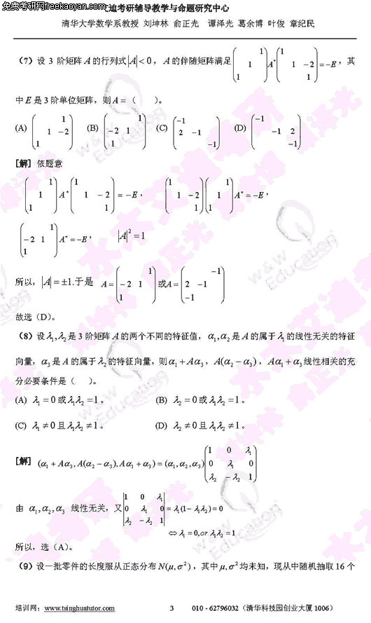 2007年半岛在线注册考前能力自测试题及答案(数学三)(3)