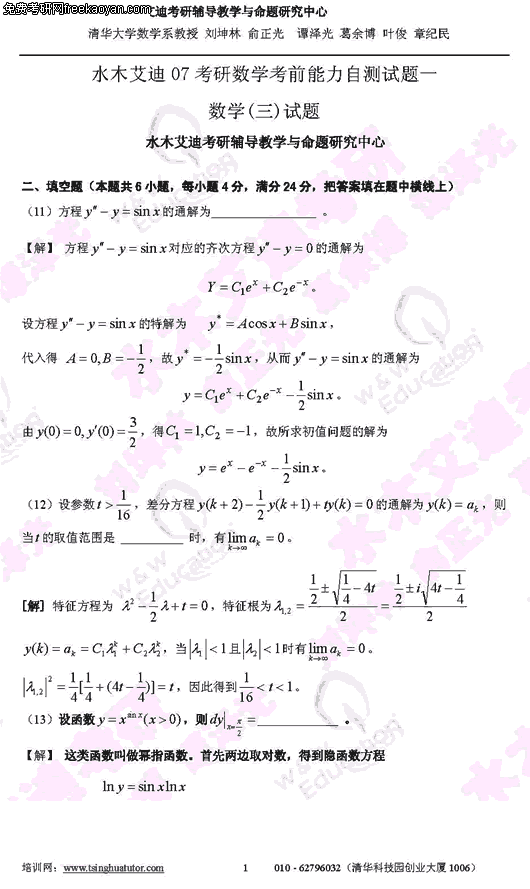2007年半岛在线注册考前能力自测试题及答案(数学三)(5)