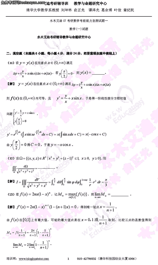 2007年半岛在线注册考前能力自测试题及答案(数学一)(4)