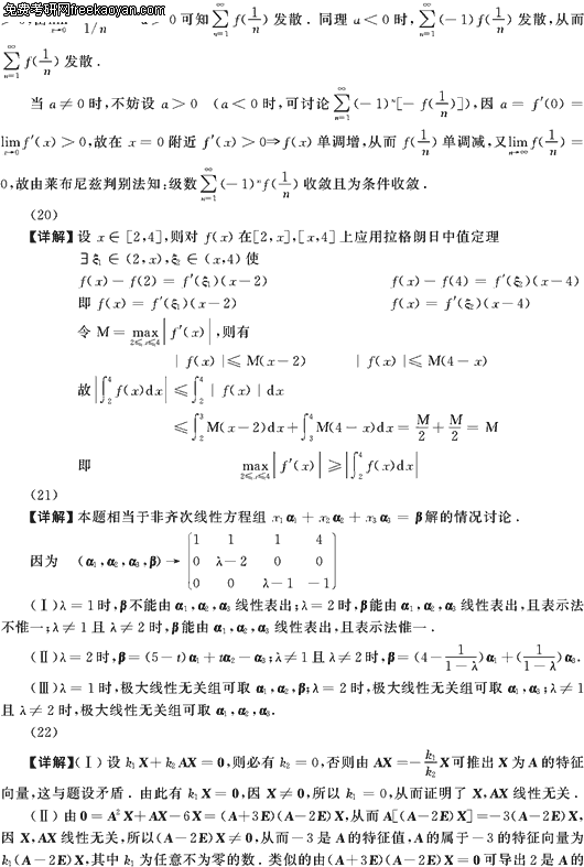 2007半岛在线注册数学考前必做三套题(数学一试卷一)(8)