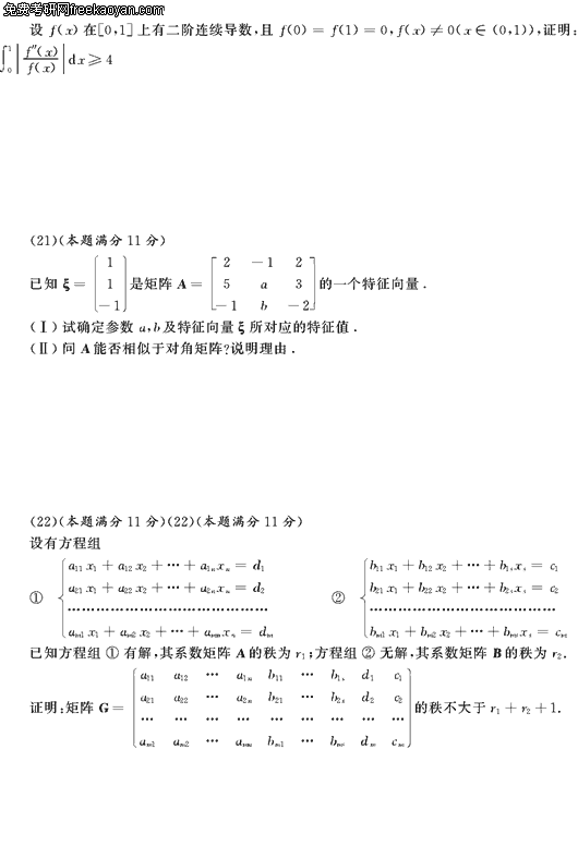 2007半岛在线注册数学考前必做三套题(数学一试卷三)(3)