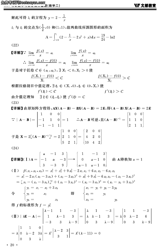 2007半岛在线注册数学考前必做三套题(数学二试卷二)(10)