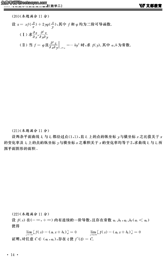 2007半岛在线注册数学考前必做三套题(数学二试卷二)(4)