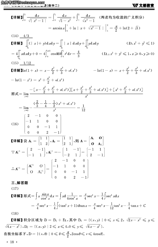 2007半岛在线注册数学考前必做三套题(数学二试卷二)(8)