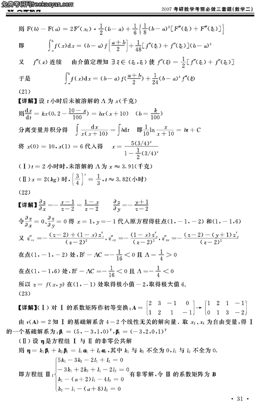 2007半岛在线注册数学考前必做三套题(数学二试卷三)(10)