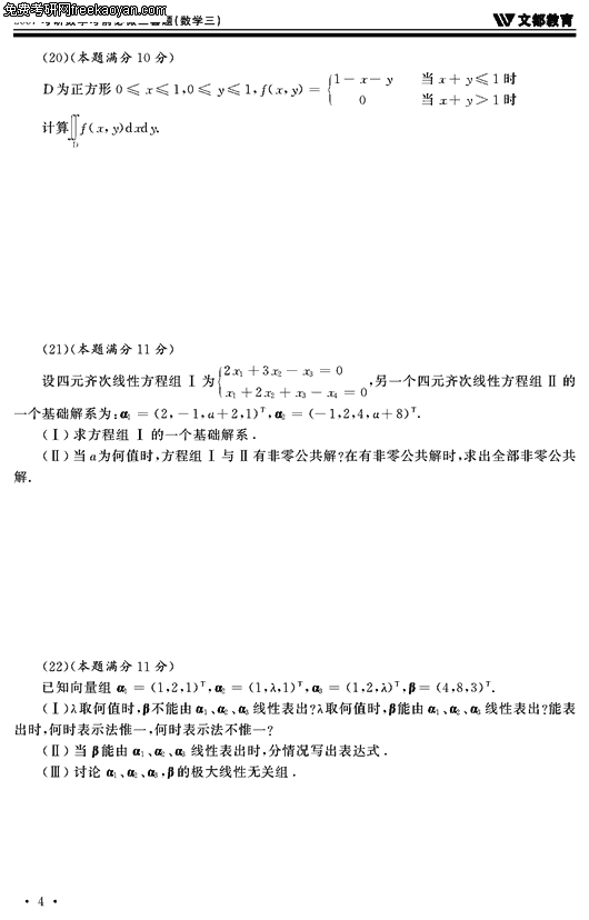 2007半岛在线注册数学考前必做三套题(数学三试卷一)(4)
