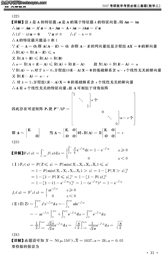 2007半岛在线注册数学考前必做三套题(数学三试卷三)(10)