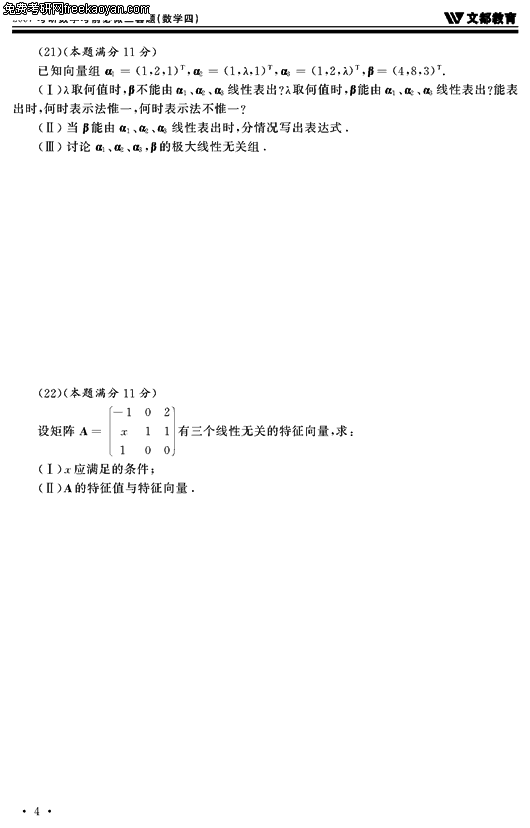 2007半岛在线注册数学考前必做三套题(数学四试卷一)(4)