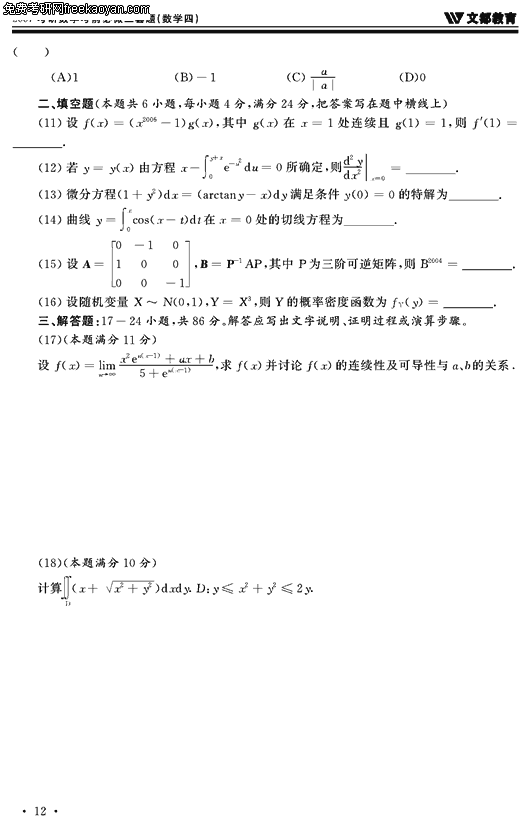 2007半岛在线注册数学考前必做三套题(数学四试卷二)(2)