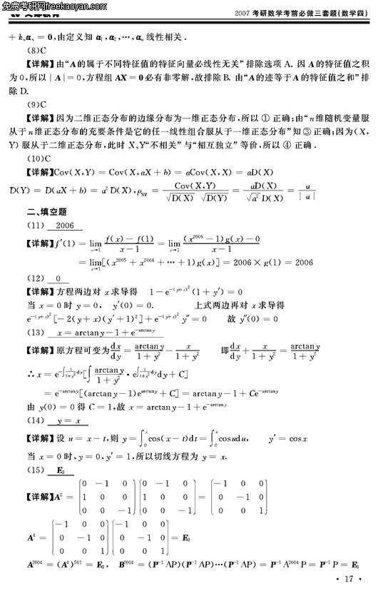 2007半岛在线注册数学考前必做三套题(数学四试卷二)(7)
